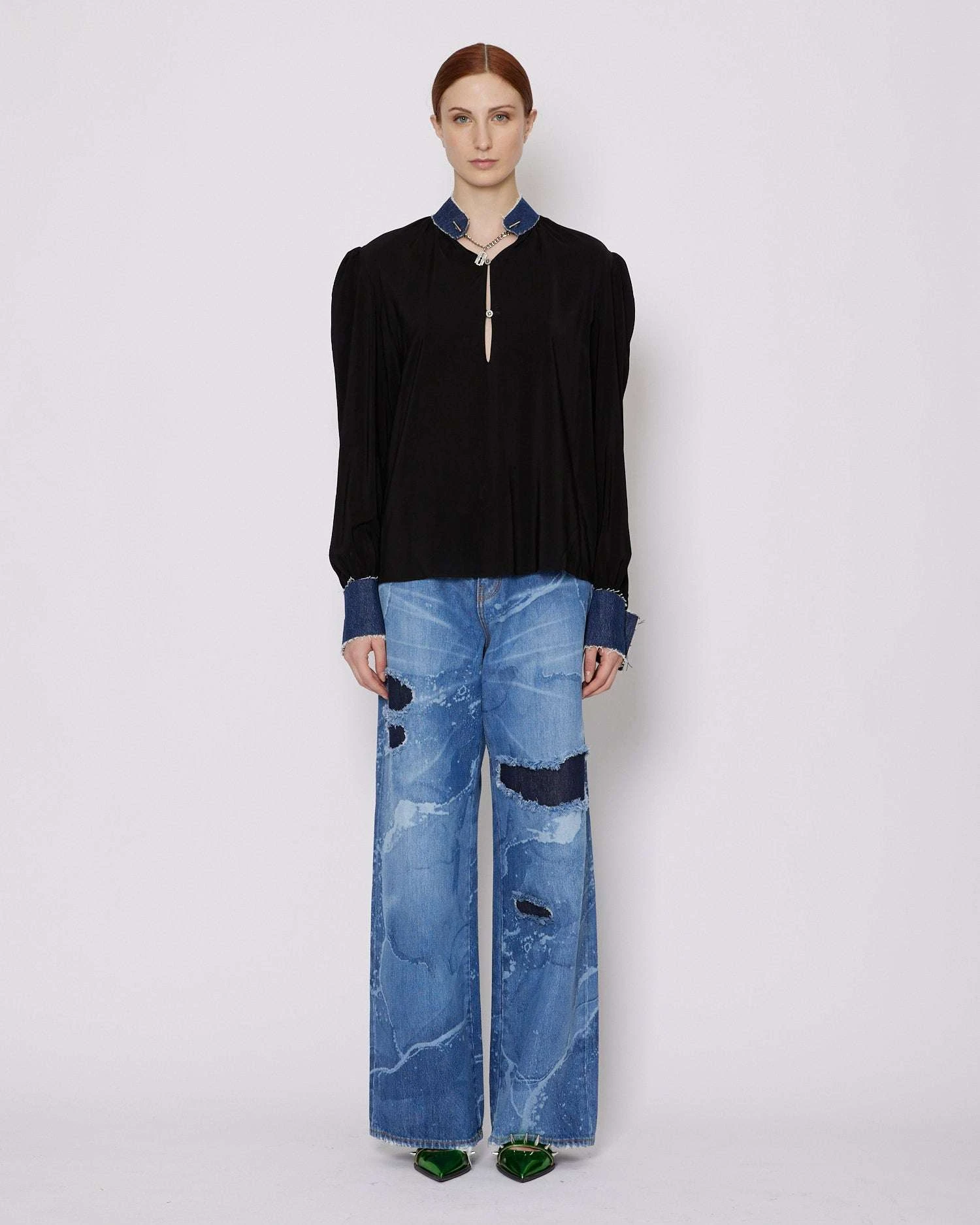 Blusa con applicazioni in denim